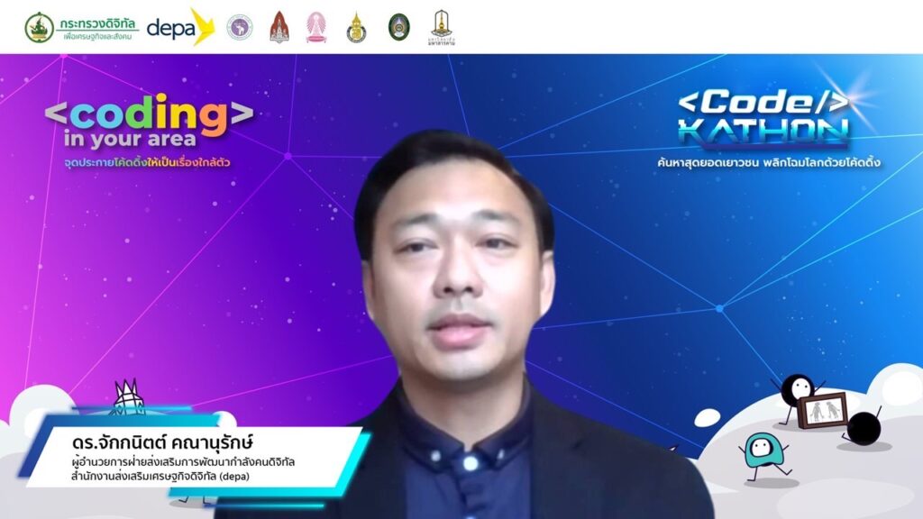 20 พฤศจิกายน 2564, กรุงเทพมหานคร – ดีป้า เดินหน้าโครงการ Coding in your area จุดประกายโค้ดดิ้งให้เป็นเรื่องใกล้ตัว พร้อมปั้น “เยาวชนโค้ดดิ้ง” ทั่วประเทศกว่า 15,000 คน ก่อนต่อยอดสู่โครงการ Codekathon เพื่อค้นหาสุดยอดเยาวชน พลิกโฉมโลกด้วยโค้ดดิ้ง กว่า 700 คน
