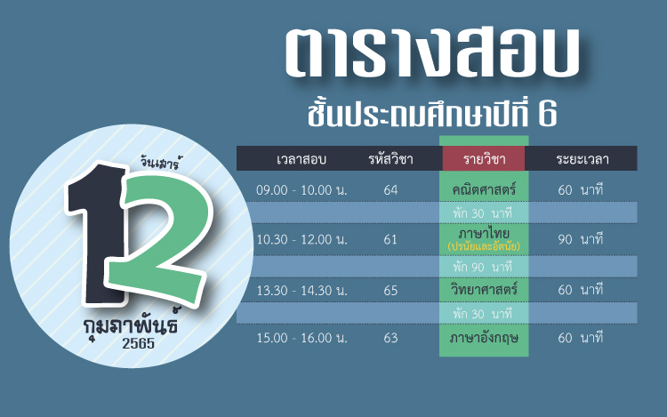 ตารางสอบโอเน็ต ป.6 ปีการศึกษา 2564
