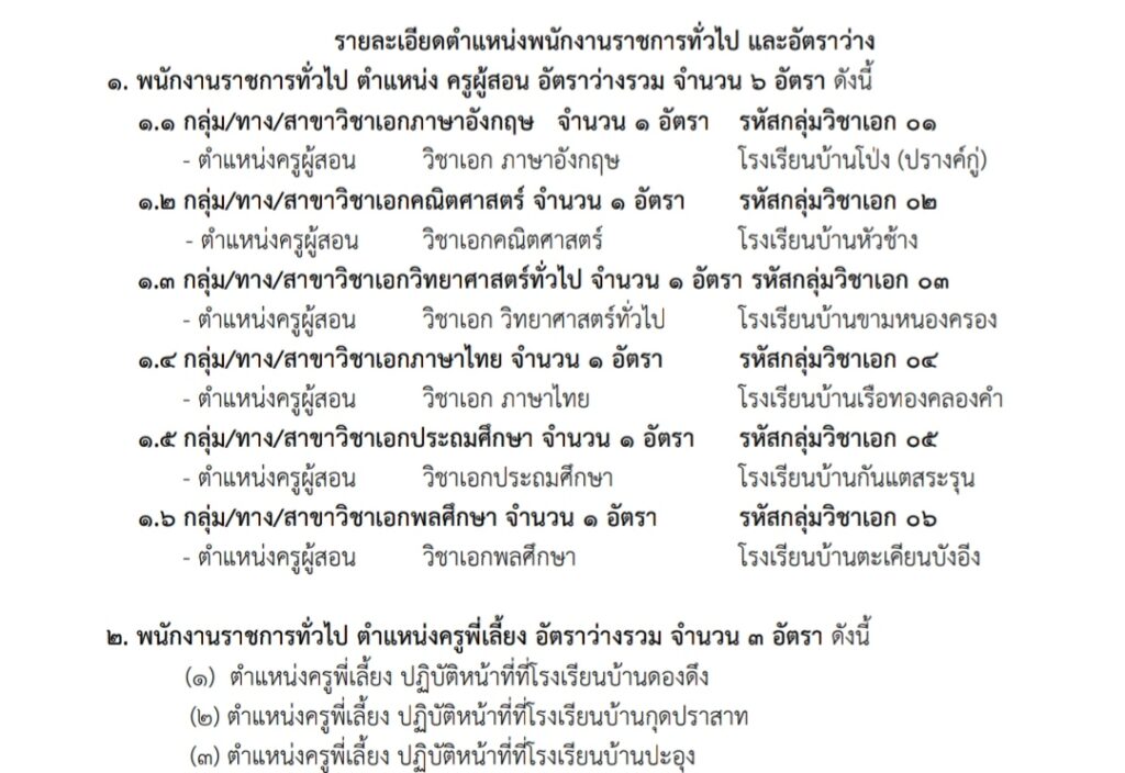 ตำแหน่ง ครูผู้สอน 6 อัตรา