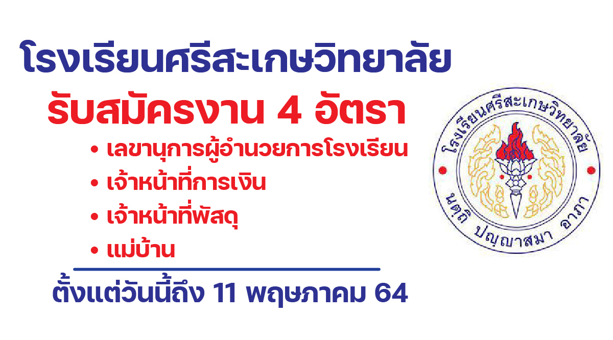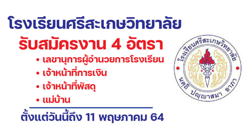 โรงเรียนศรีสะเกษวิทยาลัย จังหวัดศรีสะเกษ รับสมัครงาน 4 อัตรา