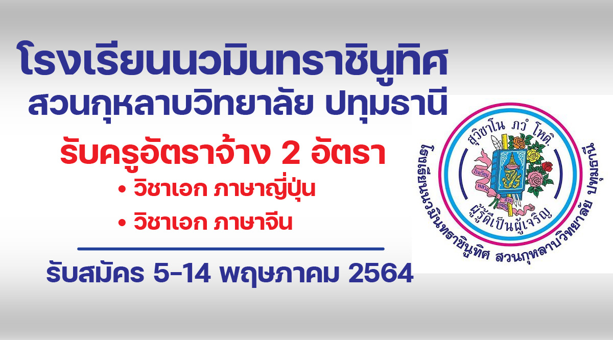 โรงเรียนนวมินทราชินูทิศ สวนกุหลาบวิทยาลัย ปทุมธานี รับสมัครครูวิชาเอกภาษาญี่ปุ่นเเละภาษาจีน