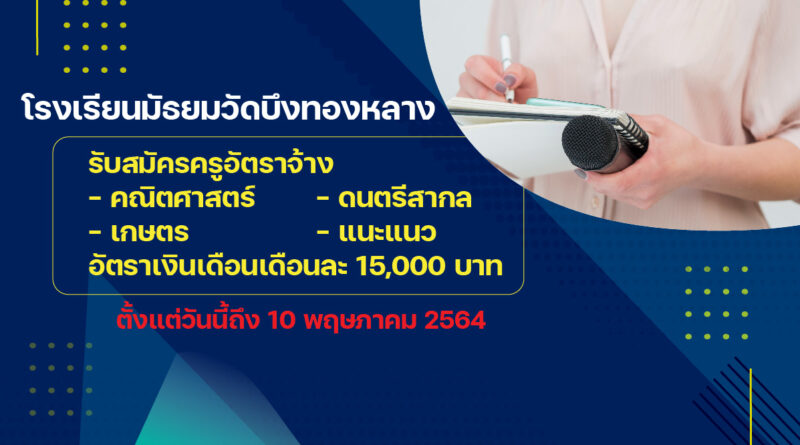 งานราชการ 4 พฤษภาคม 2021 admin โรงเรียนมัธยมวัดบึงทองหลาง รับสมัครครูอัตราจ้าง 4 อัตรา !!! โรงเรียนมัธยมวัดบึงท Read More